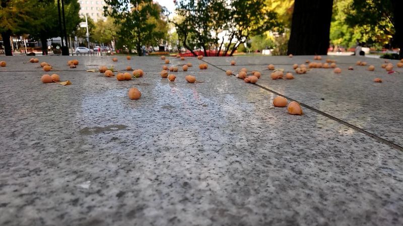 帰り銀杏が塀の上に沢山置かれているのを見た。