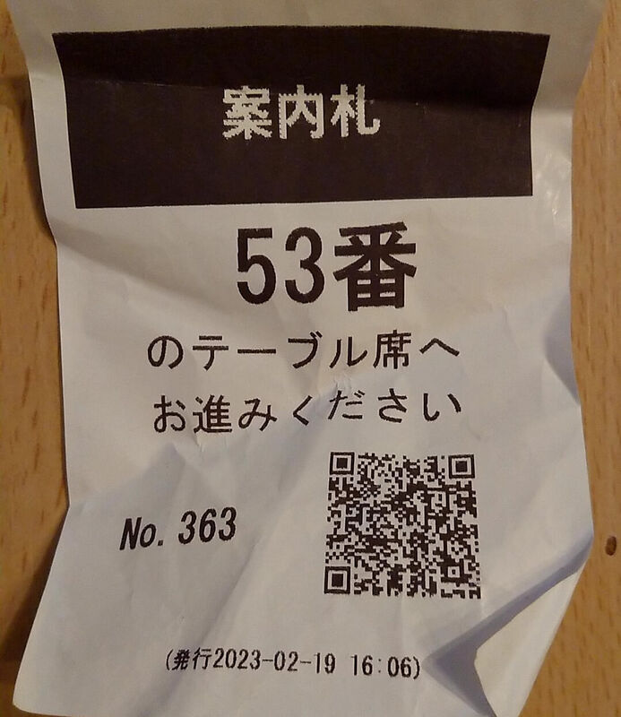 呼ばれたら上の呼び出し番号のレシートをリーダーにかざす。